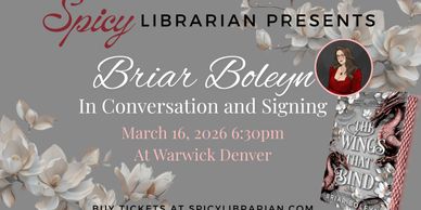 Briar Boleyn will be discussing her new book, The Wings That Bind. Each ticket will come with a copy of the book which can be signed and personalized after the event. Tickets are required for this event.